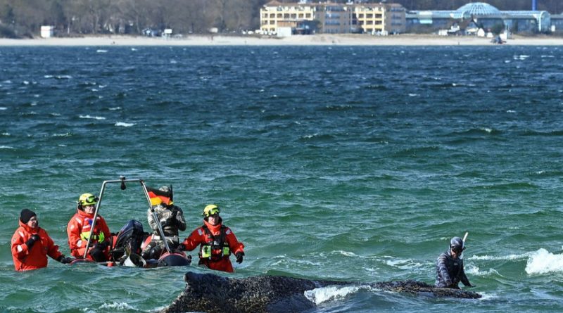 Balina geçen ay Baltık Denizi’nde görüldükten sonra Mecklenburg-Vorpommern eyaletindeki Poel Adası açıklarında çamura saplandı. Uzmanlara göre bölgedeki suyun tuzluluk oranı, kambur balinanın yaşaması için yeterli değil.