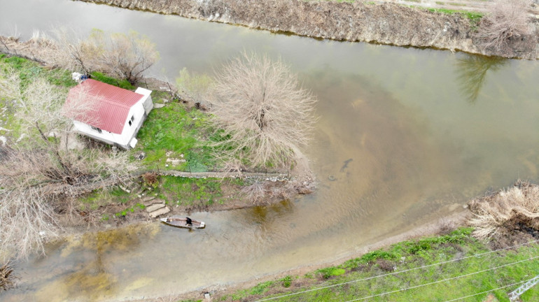 Kahramanmaraş’ta 80 yaşındaki Bayram Oğul, Gavur Gölü kuruyunca terk etmek zorunda kaldığı evine sağanak yağmurlar sonrası geri döndü. Yerli Robinson olarak bilinen yaşlı adam şimdi kayığı ile gezip çevrede vakit geçiriyor.