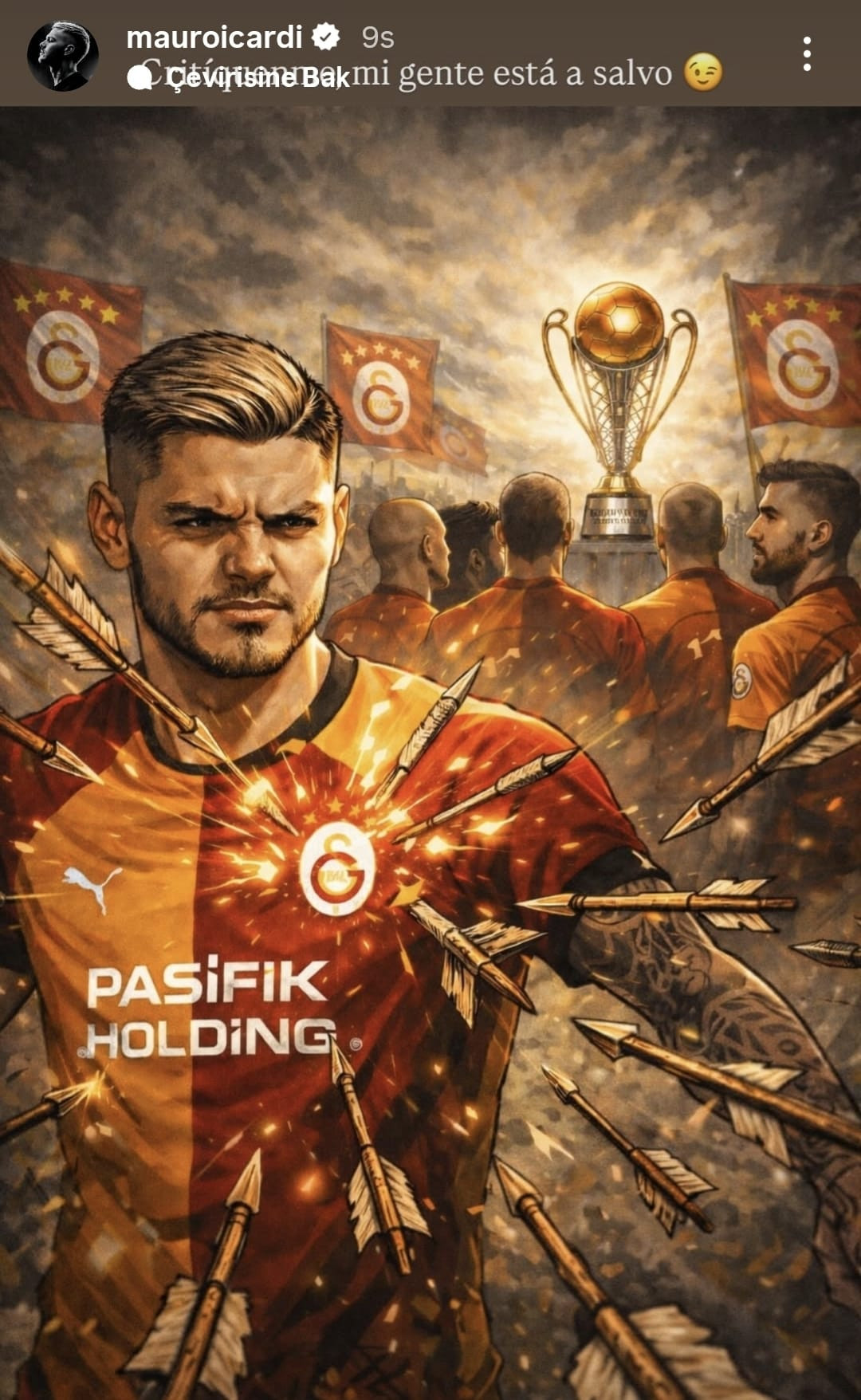 Galatasaray’ın Arjantinli golcüsü Icardi paylaştığı görsele “Beni istediğiniz kadar eleştirin, arkamdakiler güvende. Sonunda şampiyon biz olacağız” notunu düştü.